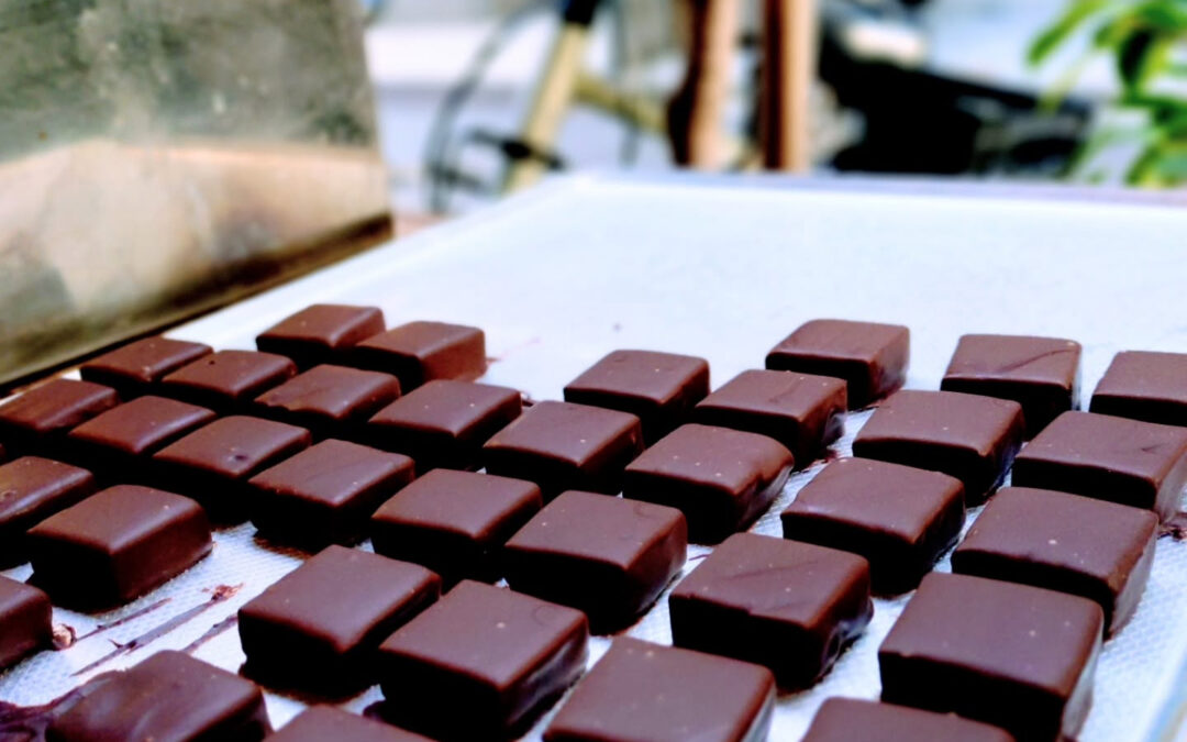 千葉県産の落花生オオマサリをロースト→キャラメリゼ→ノワールを7層のコーティング。ココアパウダーをまぶしました。じわじわと旨味の波が押し寄せます。個人的に大好きなお菓子。