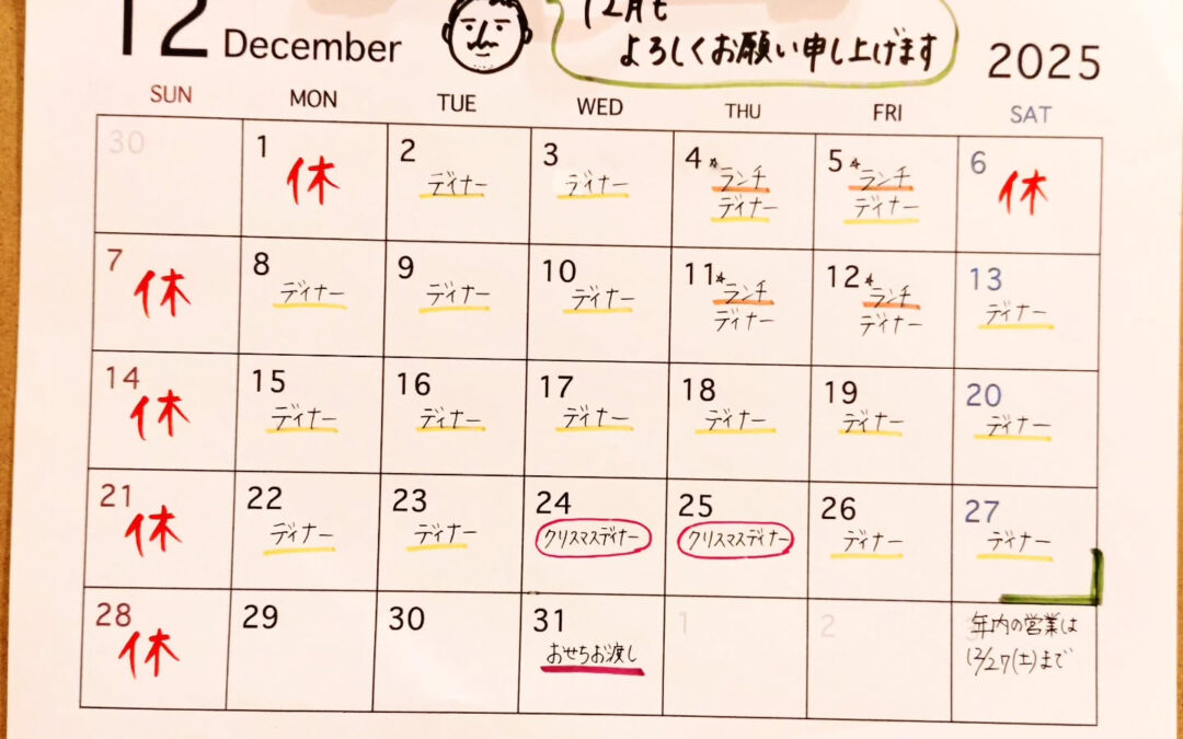 《12月の営業カレンダーです》