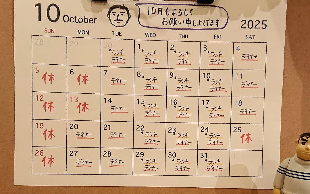 10月の営業日カレンダーです。